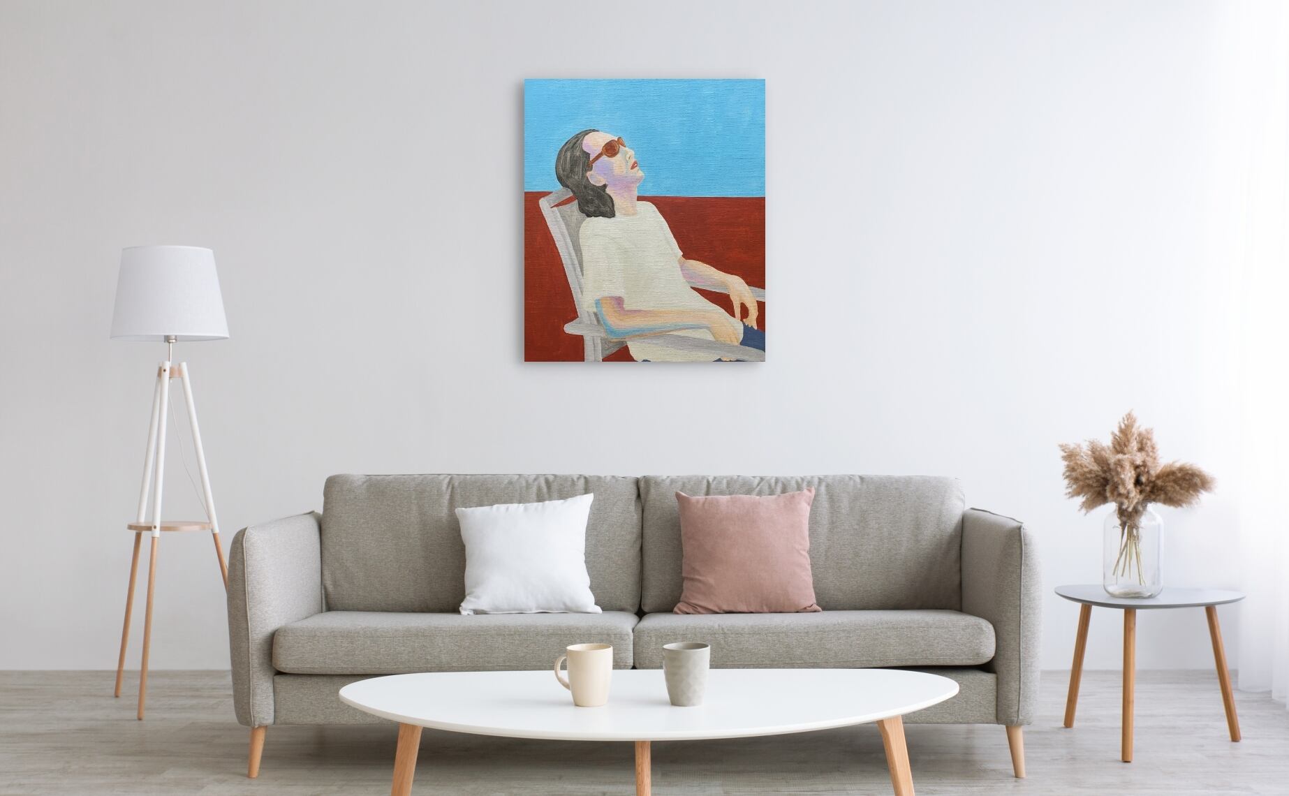 キャンバス側面のステープルはテープ(白色)で保護・装飾し、画面には保護剤を塗布してお送りいたします。